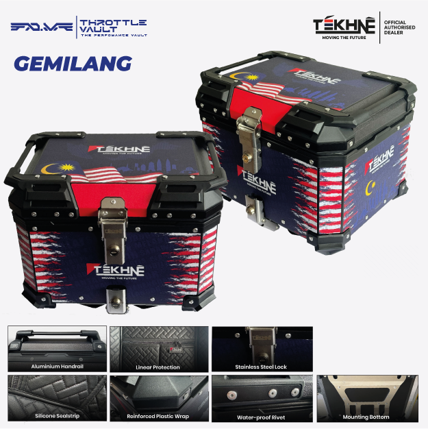 Tekhne Top Box 45L | Premium Aluminium Alloy Motorcycle Storage - GEMILANG MODEL